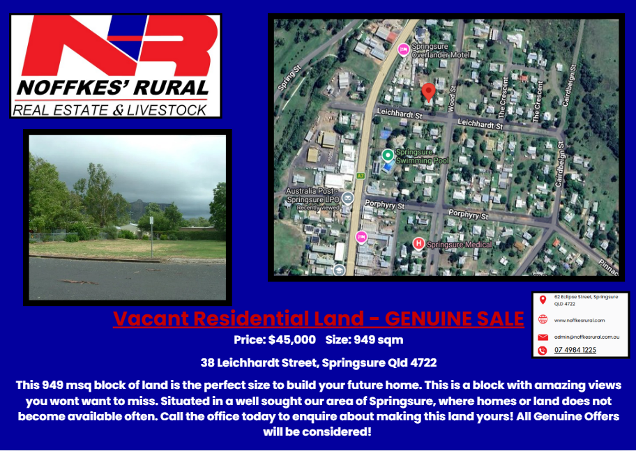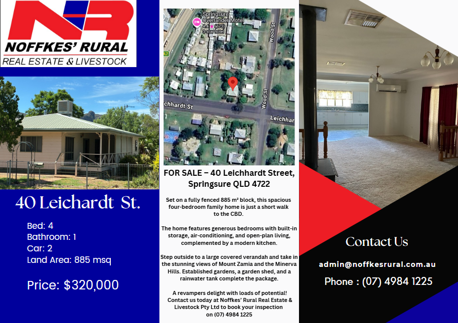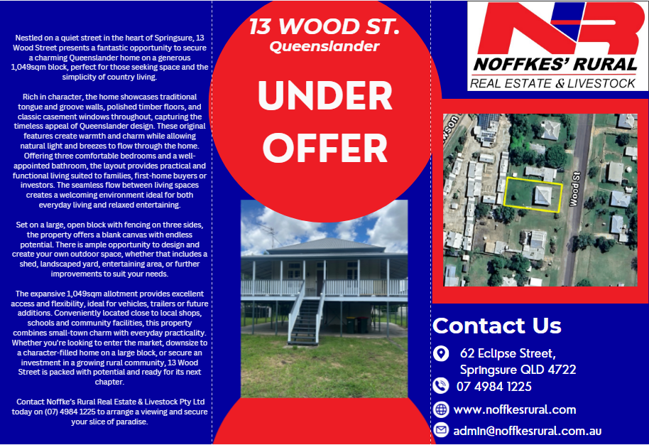 Contact Noffkes Rural Real Estate & Livestock Pty Ltd today on (07) 4984 1225 to arrange your inspection.