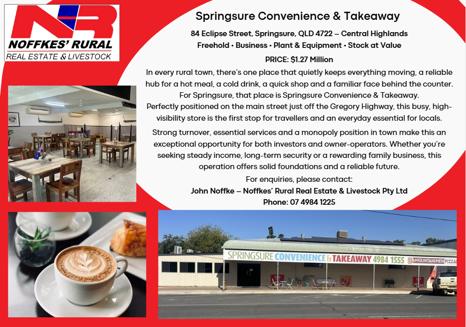 Enquire today to secure Springsure Convenience & Takeaway, a business with deep roots, strong returns and a bright future.